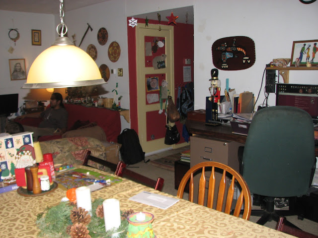 | Dining room/den/living room with block play area, adjacent to my work area. SQUOOSH. |